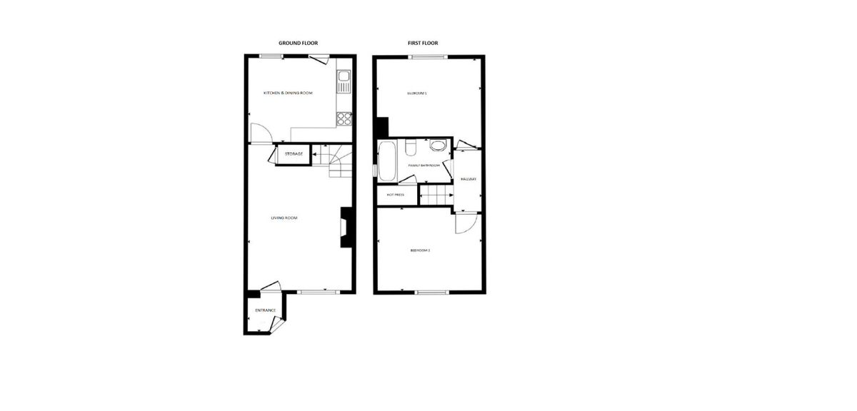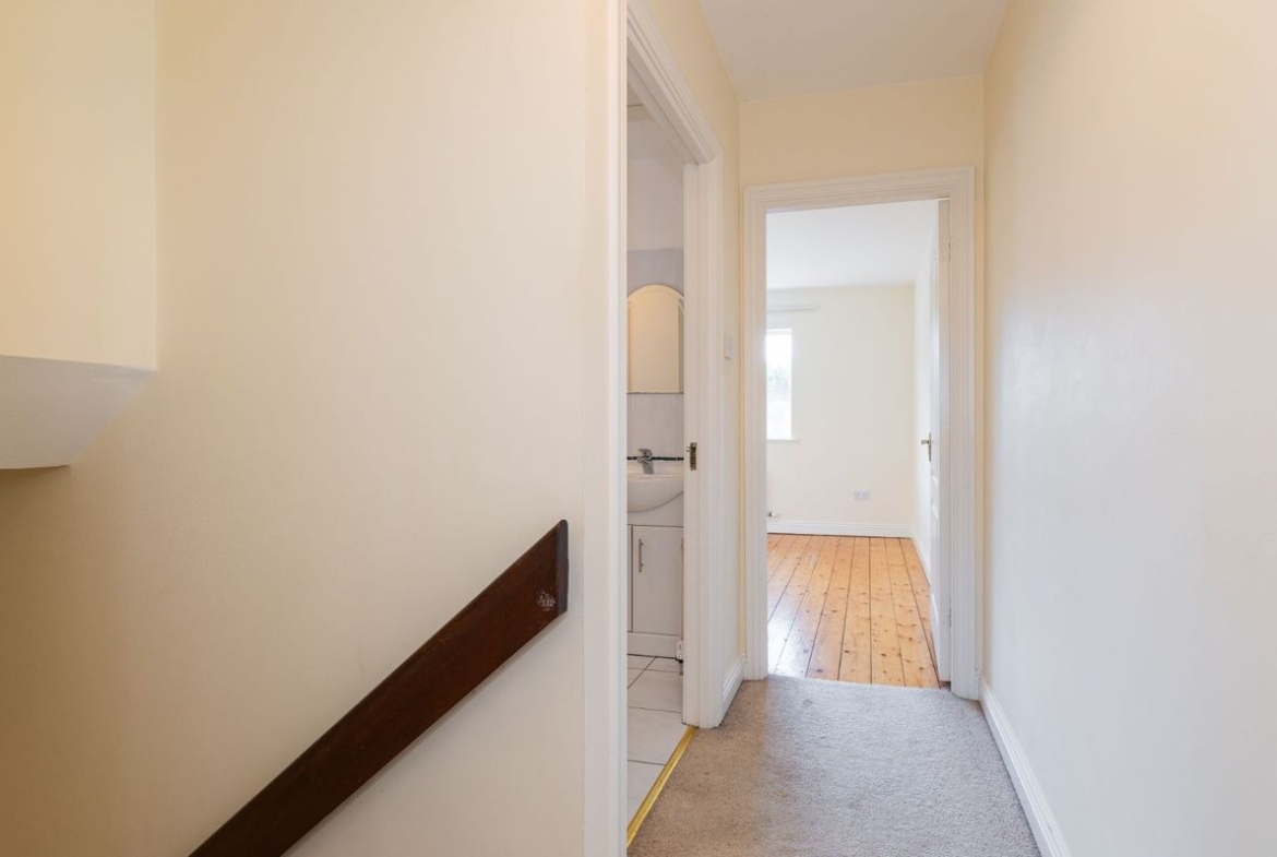 Upstairs, two generously sized double bedrooms boast elegant wood flooring, with the principal bedroom further enhanced by built-in wardrobes. A spacious fully tiled family bathroom off the landing completes the accommodation.
