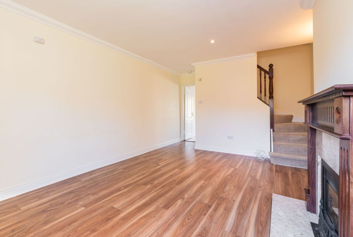 Presented in excellent condition, the interior is thoughtfully designed for modern living. The accommodation spans two floors, beginning with an inviting entrance hall leading into a spacious living room. This welcoming space features an open fireplace, ceiling coving, recessed lighting, and wood flooring, which continues seamlessly throughout the ground floor. To the rear, a well-appointed tiled kitchen/diner opens directly onto the garden and is fitted with an array of wall and floor units, a tiled splashback, and integrated appliances, including an oven, microwave, gas hob, dishwasher and freestanding washing machine.