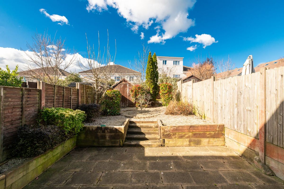 Externally, the home benefits from a private driveway with hedging, offering secure off-street parking. The rear garden extends approximately 42 ft, featuring a raised lawn enclosed by fencing, and a shed for additional storage.